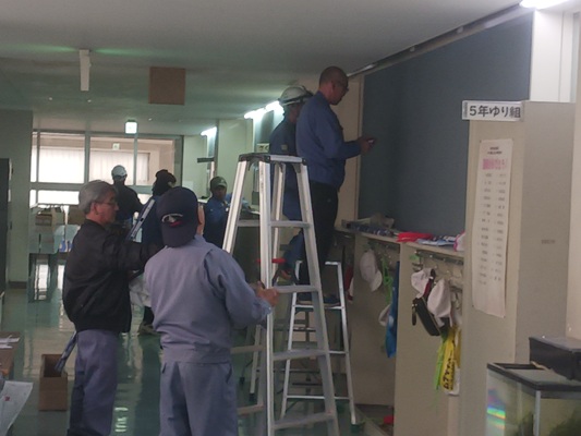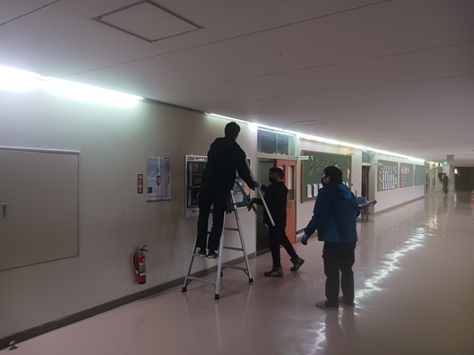 東神楽町立東神楽小学校で、廊下にある全ての照明器具の清掃と取り換えのボランティアを行いました。