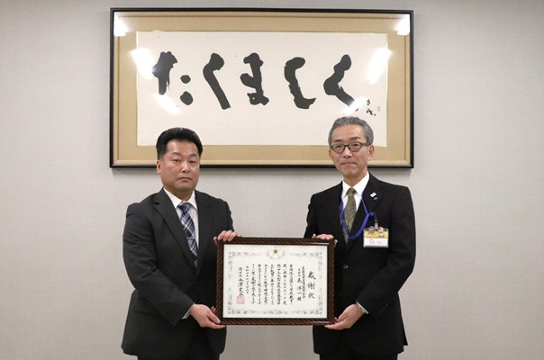 旭川市から感謝状(旭川北支部) 2025年11月27日 最終更新日時 : 2025年11月27日 道北電協 旭川北支部がおこなった永山中学校での照明器具の清掃と取替の奉仕活動で、11月26日(水)に旭川市の野﨑教育長から感謝状をいただきました。